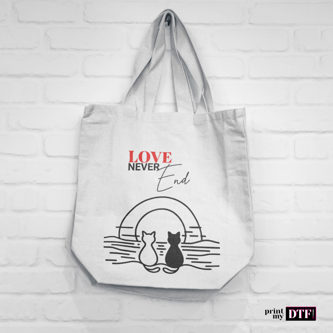 Ce transfert DTF "Love Never End" est idéal pour personnaliser t-shirts, sacs et autres articles textiles. Captivez vos clients avec un message d'amour qui ne se termine jamais. Créez des pièces uniques et mémorables avec ce design magnifique.