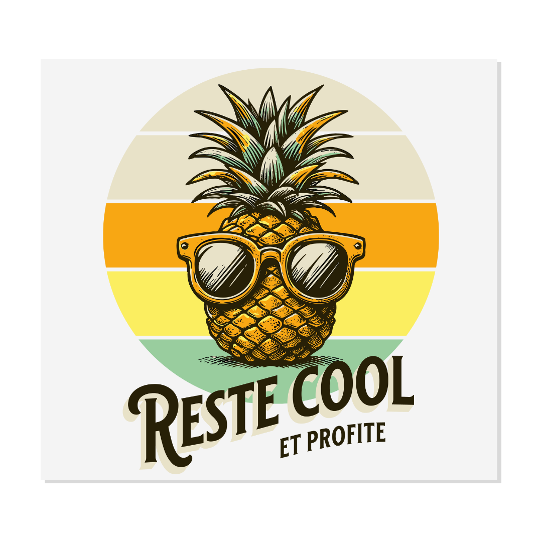 Ce transfert DTF "Reste Cool" est parfait pour personnaliser t-shirts, sacs et autres articles textiles. Offrez à vos clients un design qui inspire le calme et la détente. Créez des pièces uniques avec ce design moderne et attrayant.