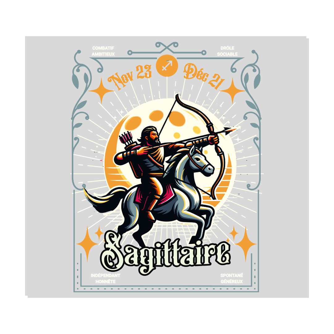 Apportez une touche céleste à vos créations textiles avec notre design DTF Signe Astrologique Sagittaire. Parfait pour les professionnels cherchant à ajouter une dimension astrologique et élégante à leurs produits. Nos transferts sont de haute qualité, faciles à appliquer et offrent une durabilité exceptionnelle.