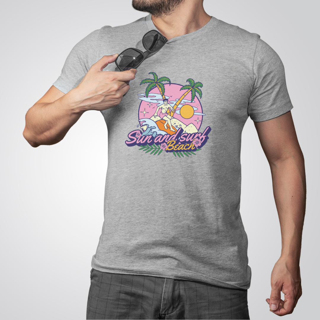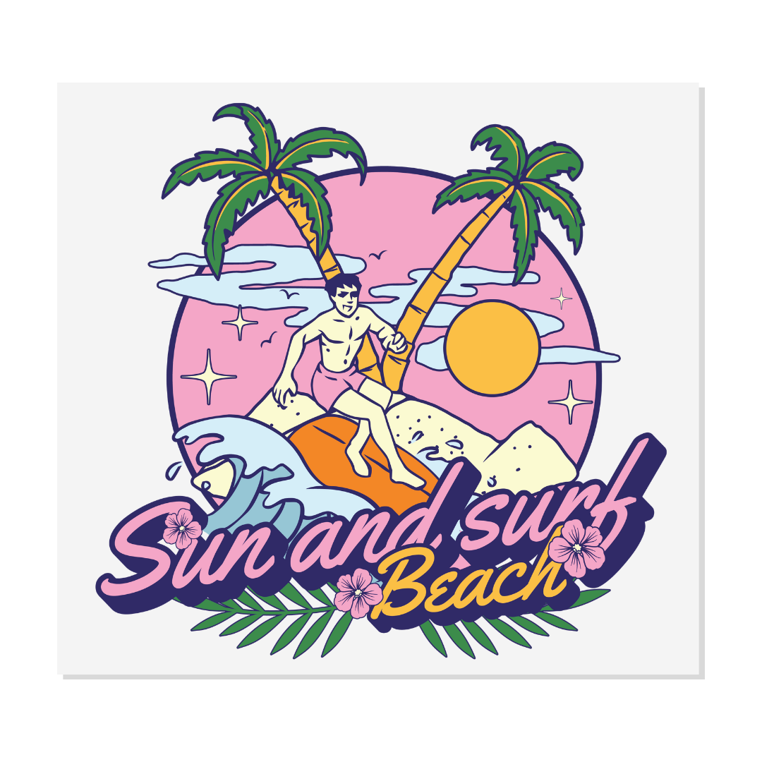 Transformez t-shirts, sweatshirts et accessoires en célébrations estivales grâce à notre design prêt à presser. Idéal pour les amateurs de plage et de surf, ce motif vibrant et détaillé apportera une touche de chaleur et d'aventure à vos créations textiles.