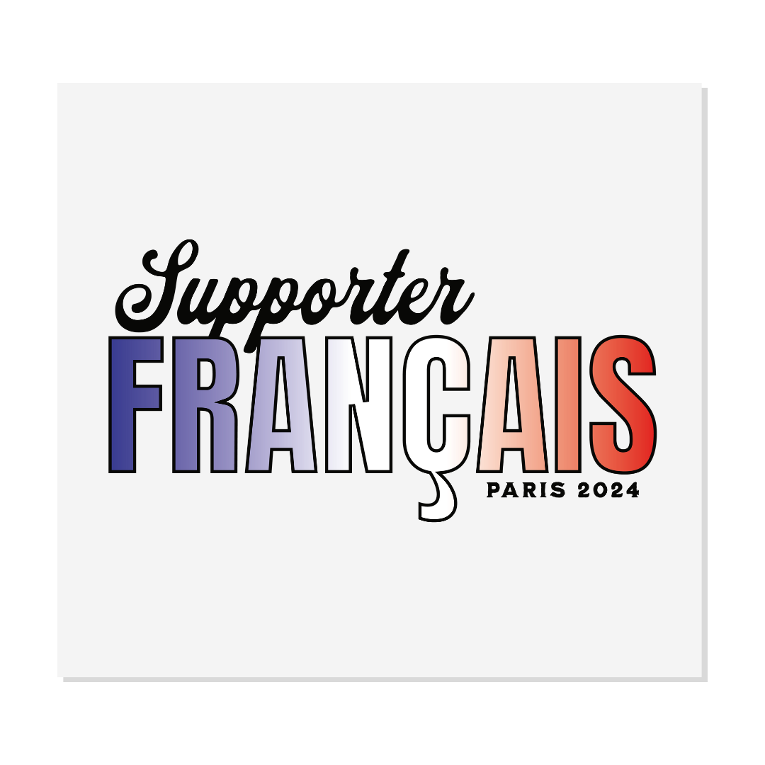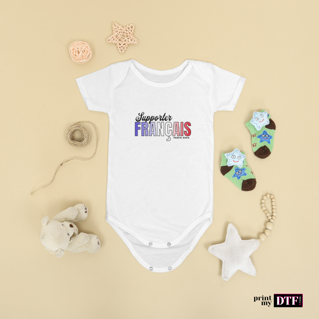 Exprimez votre fierté nationale avec notre design prêt à presser "Supporter Français". Parfait pour les événements sportifs, les fêtes nationales ou tout moment où vous souhaitez montrer votre amour pour la France, ce transfert DTF est idéal pour personnaliser t-shirts, sweat-shirts et autres vêtements. Facile à appliquer, il offre une excellente durabilité et une finition professionnelle.