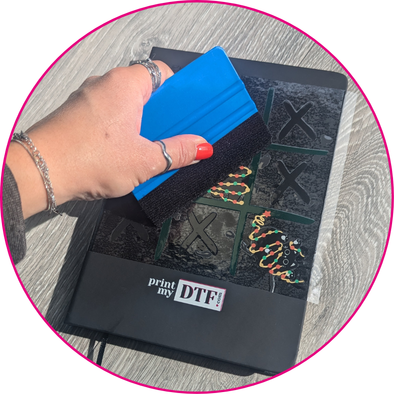 Appliquez le sticker UV DTF sur votre support en bois, sans oublier de suivre nos instructions de pose. Si besoin, consultez notre vidéo explicative : “Comment poser un transfert UV DTF ?”