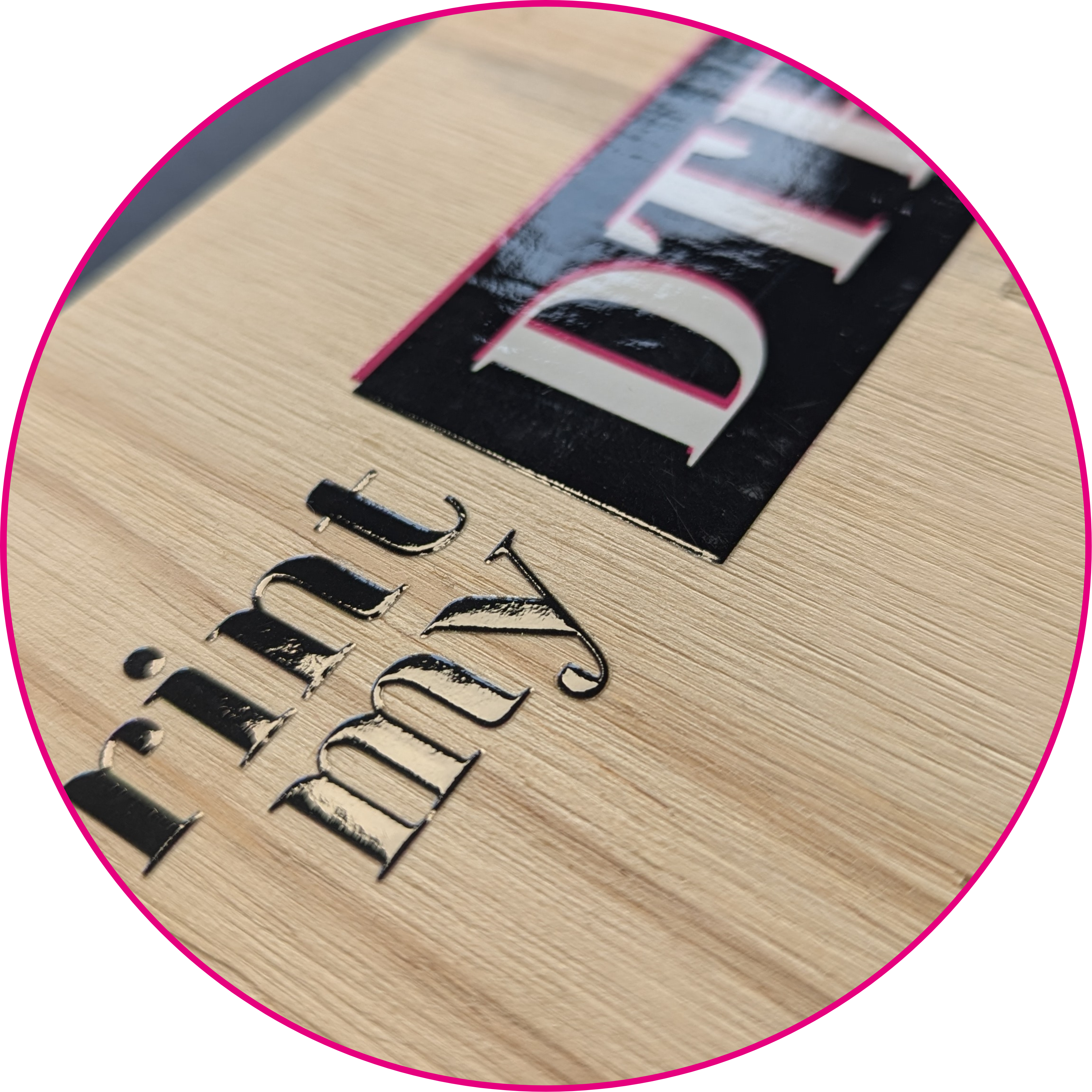 L’impression UV DTF permet de personnaliser facilement tous vos objets en bois. Intégrez vos logos, motifs ou designs sur tous vos supports en bois : panneaux décoratifs, boîtes, planches ou cadres. Grâce à cette technologie innovante, bénéficiez d’une pose rapide et intuitive, pour un rendu précis et soigné.