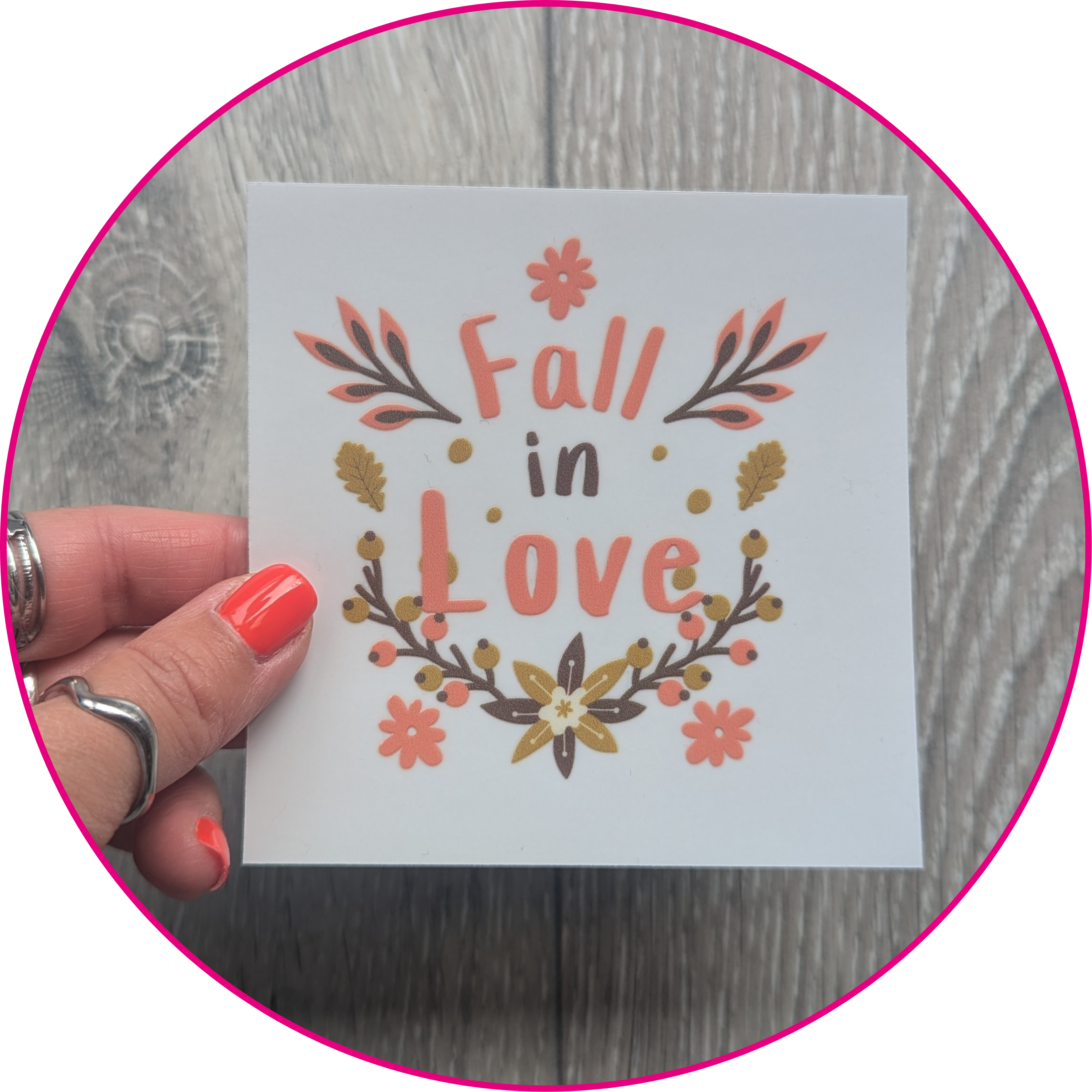 Le transfert UV-DTF (Direct-to-Film) est une technique d’impression directe qui utilise des encres UV durcies par lumière ultraviolette pour créer des impressions précises et résistantes. Cette méthode d’impression permet d’obtenir des motifs précis sur un sticker autocollant que vous pourrez ensuite transférer sur l’objet en bois de votre choix.