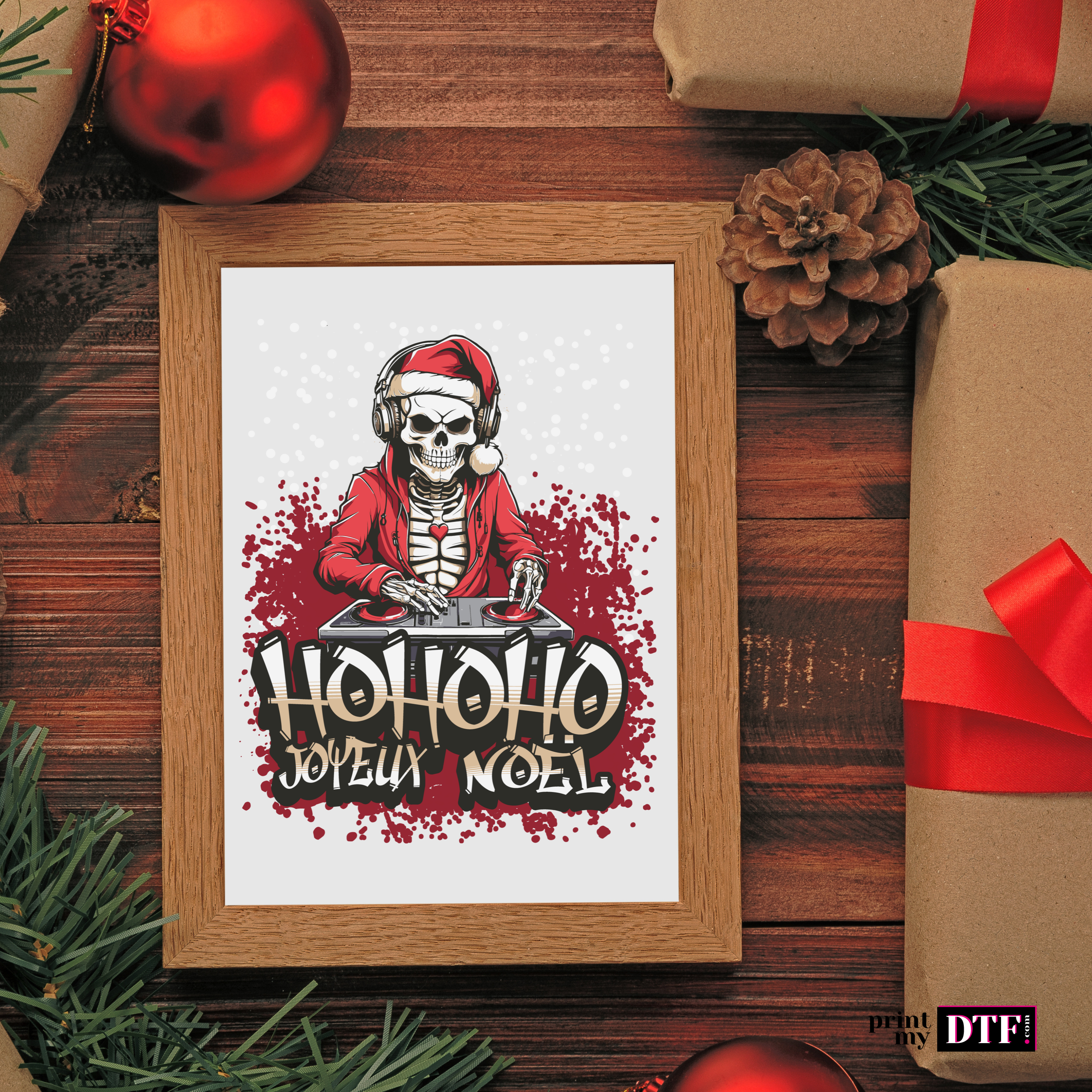 Ajoutez une touche originale à vos décorations avec ce sticker Squelette Père Noël. Idéal pour les amateurs de styles décalés, ce transfert UV DTF combine l'esprit festif de Noël avec une esthétique gothique. Facile à poser sur de multiples surfaces, il est parfait pour personnaliser vos objets ou cadeaux de saison.