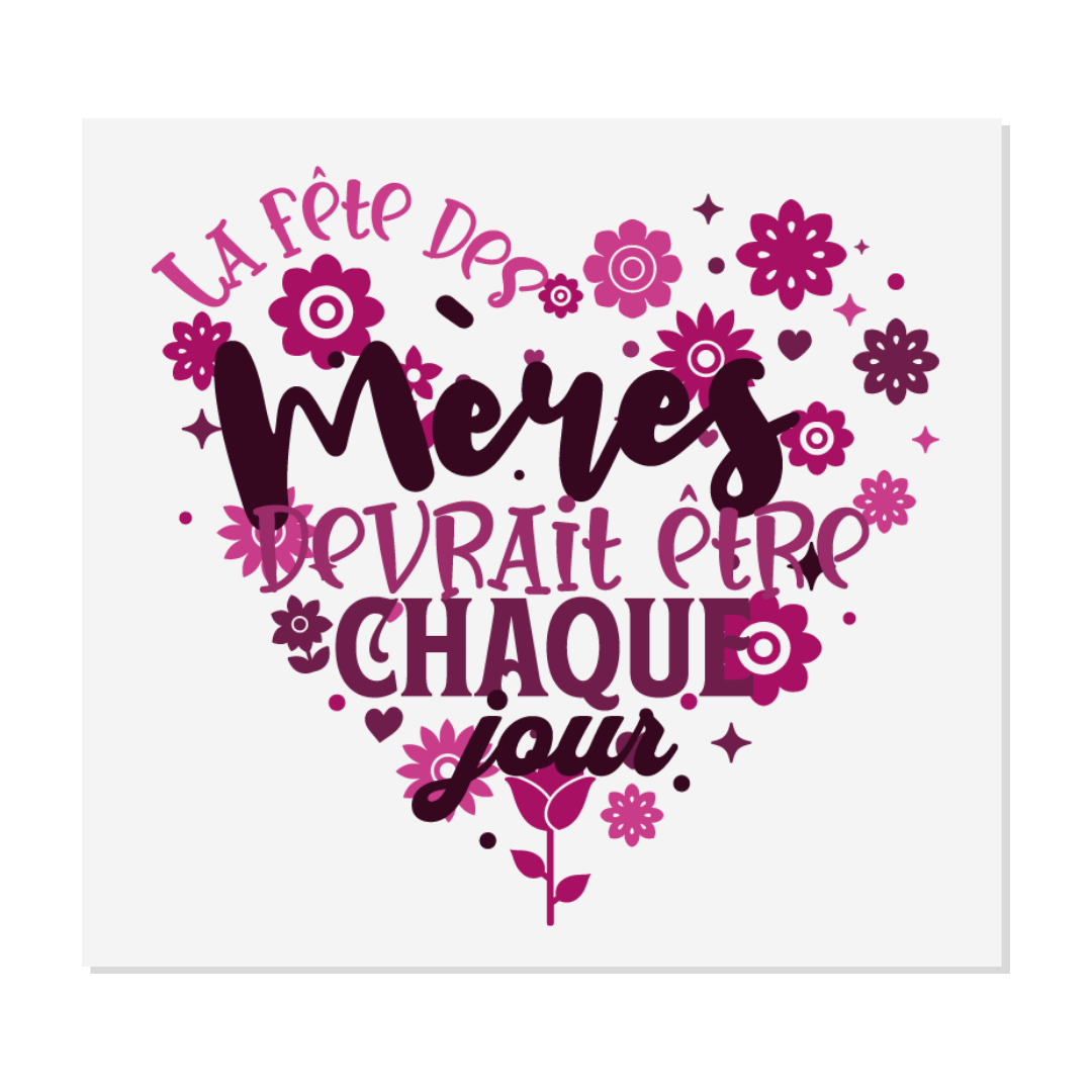 Explorez notre gamme de transferts DTF "Chaque Jour", pour célébrer la fête des mères. Ces planches prêtes à l'emploi permettent de personnaliser une variété de textiles, du vêtement quotidien aux accessoires spéciaux. Ils garantissent une impression de haute qualité, des couleurs vives et une durabilité exceptionnelle, idéales pour des créations qui durent toute l'année.