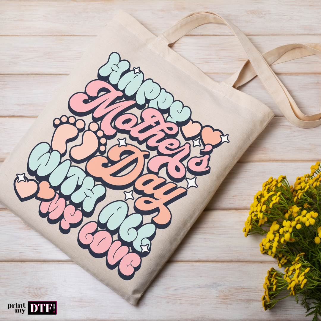 Célébrez la Fête des Mères avec notre transfert DTF "Happy Mother's Day". Ce design festif et élégant est idéal pour ajouter une note spéciale à vos textiles lors de cette occasion.