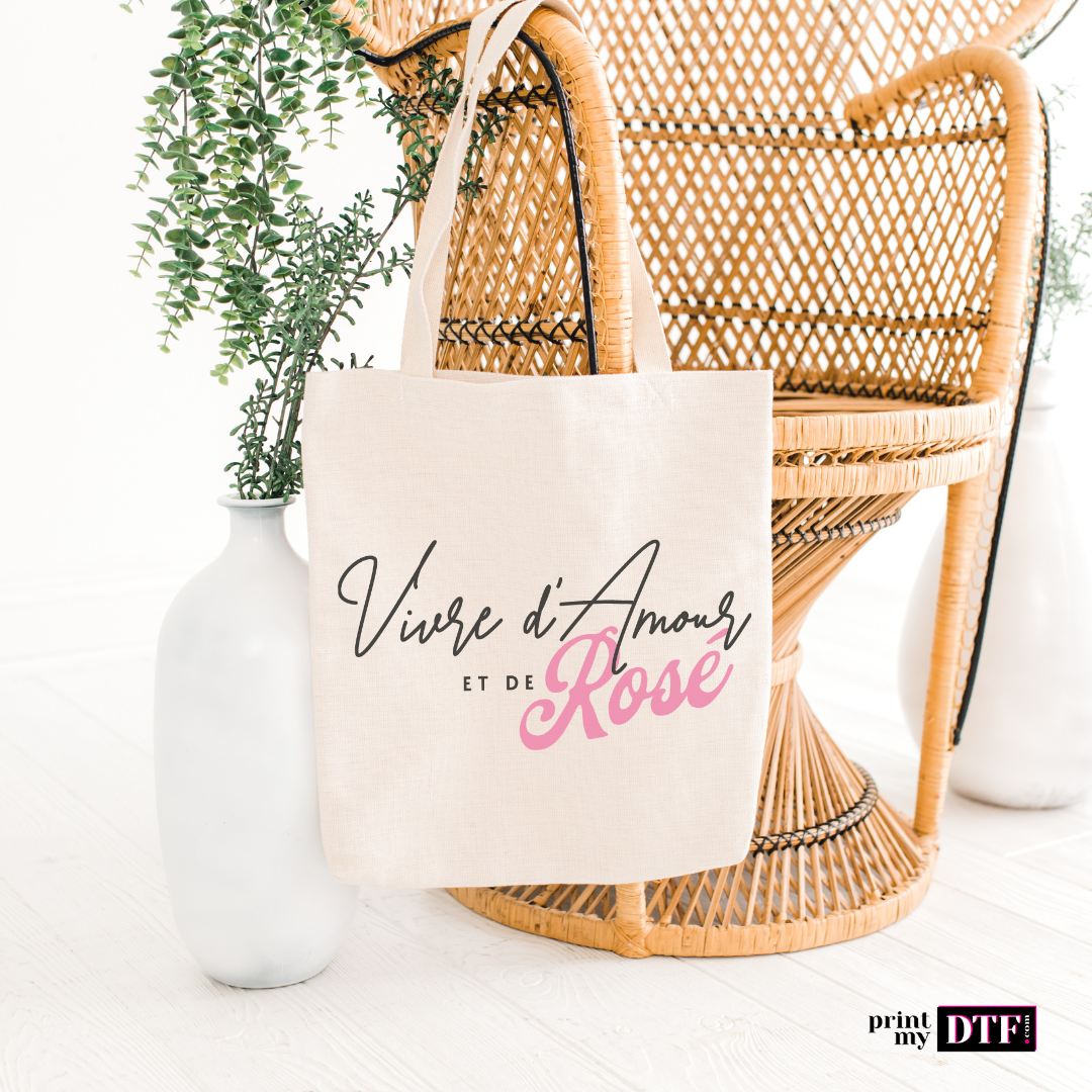 Célébrez l'esprit festif avec notre transfert DTF "Vivre de Rosé". Parfait pour les amateurs de vin et les événements joyeux, ce design chic et pétillant apporte une touche d'élégance à tout textile.