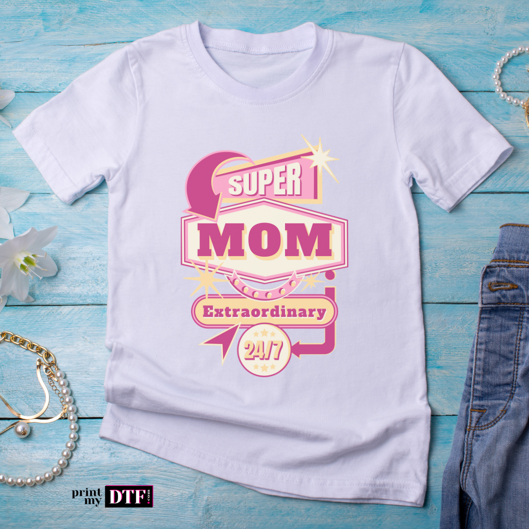 Exprimez l'admiration pour les super mamans avec notre transfert DTF "Super Mom". Ce design énergique et motivant est parfait pour ajouter une touche de reconnaissance et de célébration sur les textiles.
