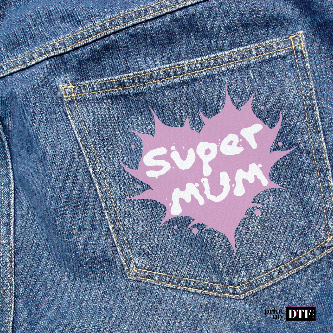 Découvrez nos planches de transfert DTF "Super Mum", idéales pour personnaliser les vêtements et accessoires de toutes les super mamans.